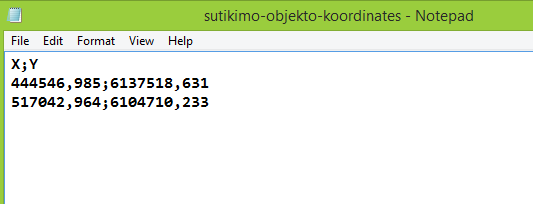 Pastaba. Koordinačių poros tekstiniame faile turi būti atskirtos kabliataškiais.