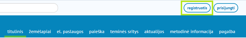 1.1. Spaudžiama nuoroda "Registruotis" titulinio puslapio viršuje.