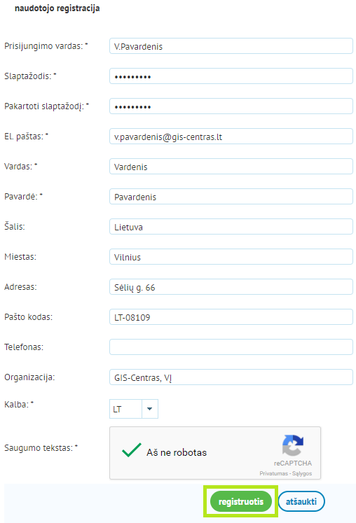 1.3. Spaudžiamas mygtukas "Registruotis".