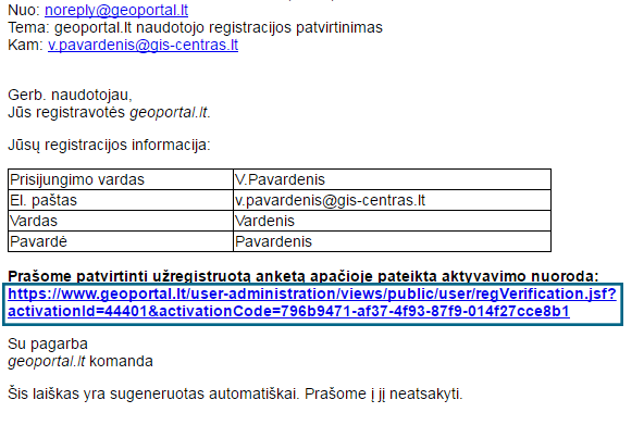 1.5. Atidarykite el. laišką ir spustelėkite paskyros registracijos nuorodą, tam, kad paskyra būtų aktyvuota.